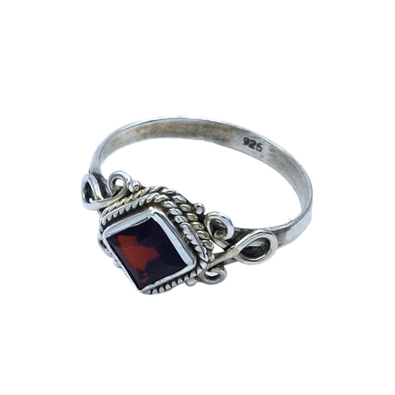 Este anel de prata 925 - indiano é feito à mão com a mais alta qualidade de artesanato. A pedra natural granada lapidada é uma escolha elegante e sofisticada para quem procura um toque de cor em sua coleção de joias. A combinação da prata 925 e a pedra granada resulta em um design exclusivo e impactante, tornando este anel uma adição impressionante para qualquer guarda-roupa.