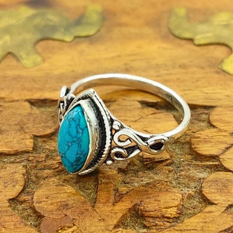 Este anel é feito com turquesa natural e prata esterlina 925, sendo uma escolha sofisticada para quem aprecia peças artesanais. Importado da Índia, ele representa o que há de melhor na tradição joalheira indiana, onde cada peça é única e feita com dedicação. A cor vibrante da turquesa traz leveza e alegria, enquanto a prata oferece um brilho clássico e durável, ideal para ser usado em diversas ocasiões.