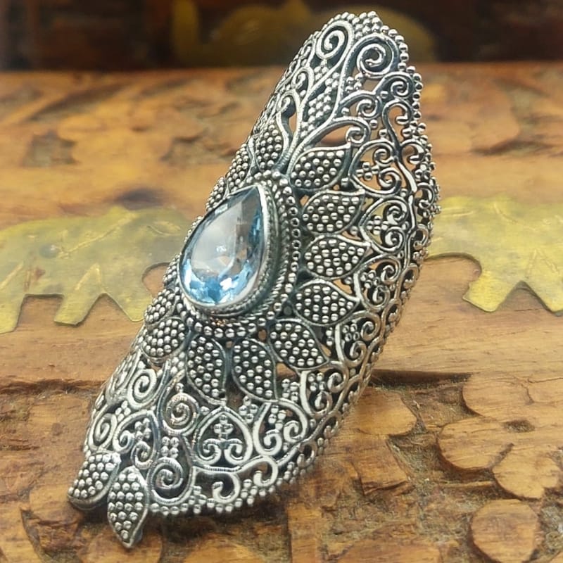 Anel Prata Bali 925 - Pedra Topázio Azul - Filigrana - Lançamento