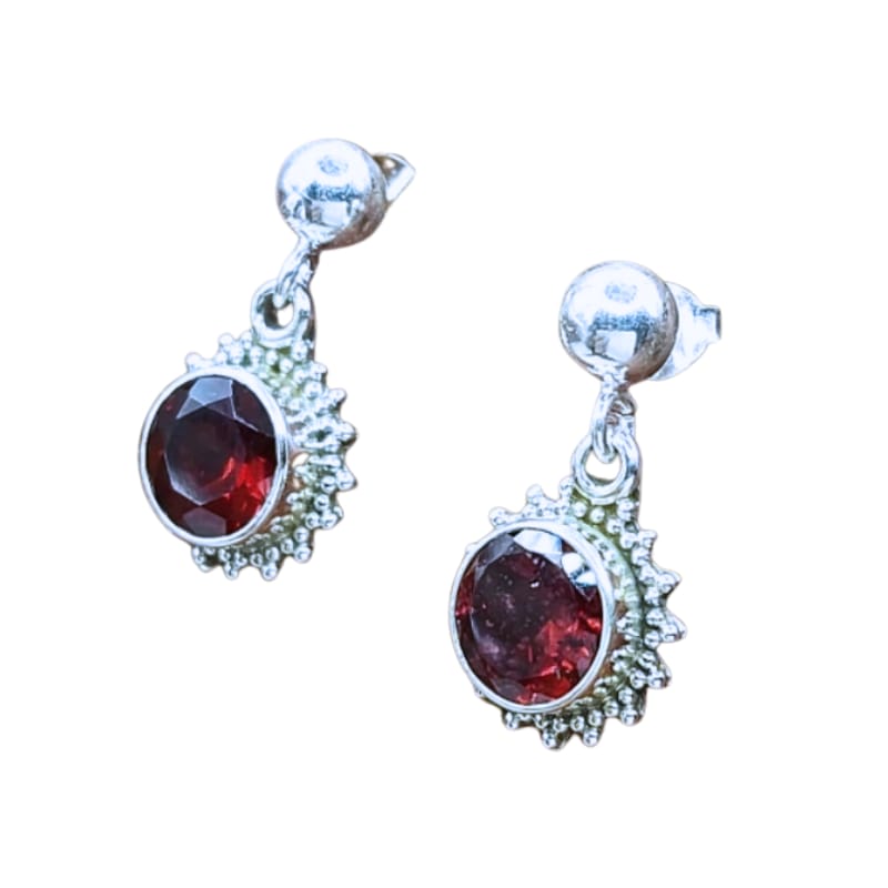Brinco de Prata 925 e pedra Granada - Filigrana - Sol