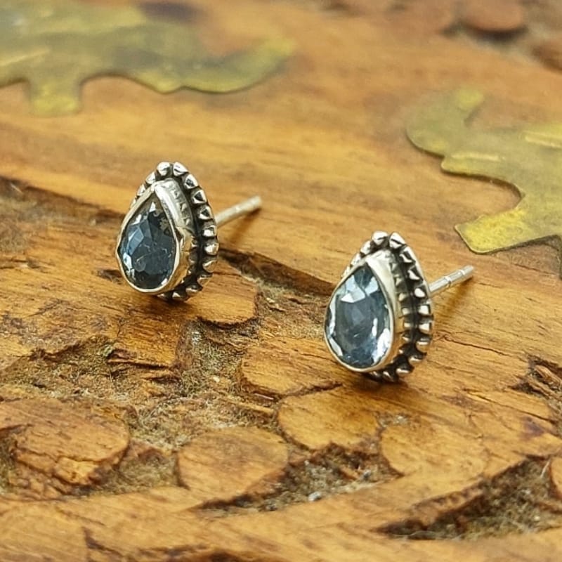 Brinco de Prata 925 Indiano Gota Topázio Azul